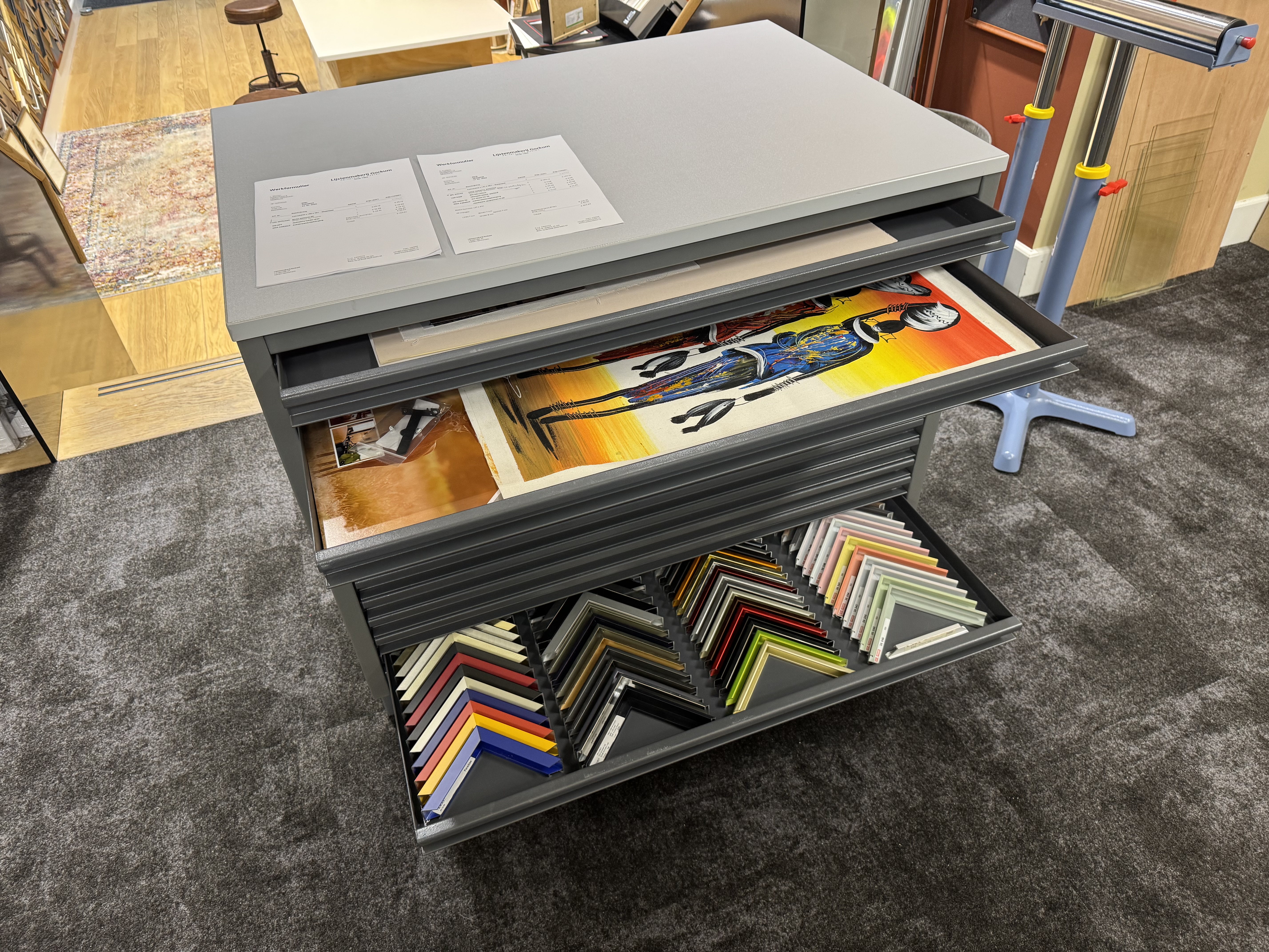 Een impressie van onze winkel en Lijstenmakerij.